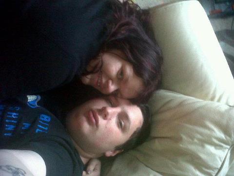 A picture of Sean and his girlfriend Rachel who is helping him to tackle his illness,i love this picture of them lounging on my sofa !!