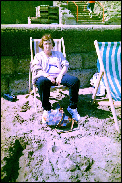 Watching my mam and dad and gran sitting in deckchairs...though my dad didn't last long he hated the beach and always went for a walk! probably having a pint in a pub on the promenade!